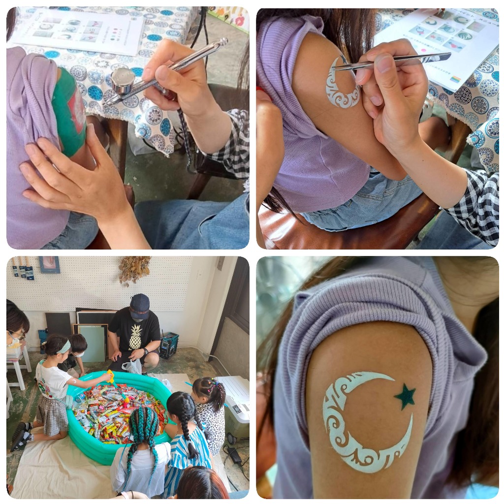 ウェルカムボードなどオーダーメイドイラストのリニューアル構想やコラボレーション構想、エアブラシ体験教室構想。